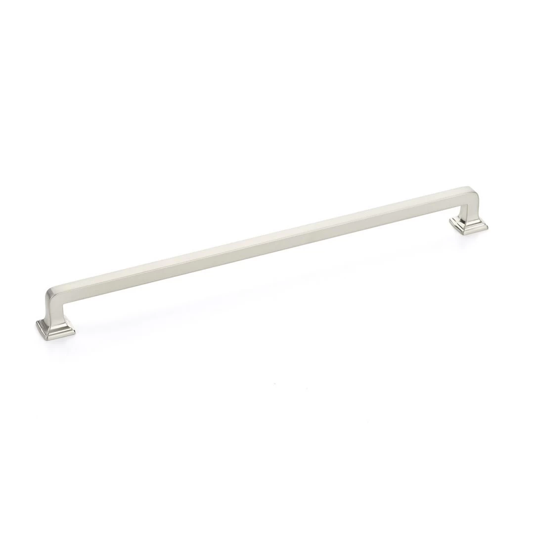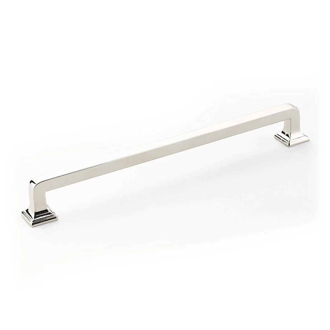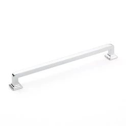 Menlo Park by Schaub and Company is a clean and simple option for transitional cabinet hardware. This solid brass hardware collection has a wide variety of knobs and two styles of handles where it flares at the feet. You won’t be limited in your home with this hardware.